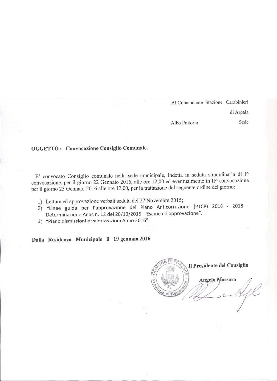 CONSIGLIO COMUNALE DEL 22 GENNAIO 2016