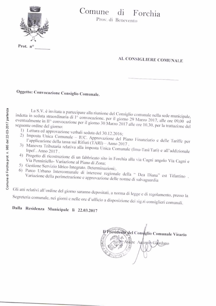 CONSIGLIO COMUNALE DEL 29 MARZO 2017