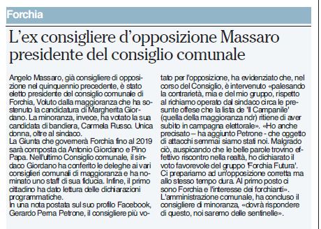 L'EX CONSIGLIERE D'OPPOSIZIONE MASSARO PRESIDENTE DEL CONSIGLIO COMUNALE (da "Ottopagine" del 10/06/2014)